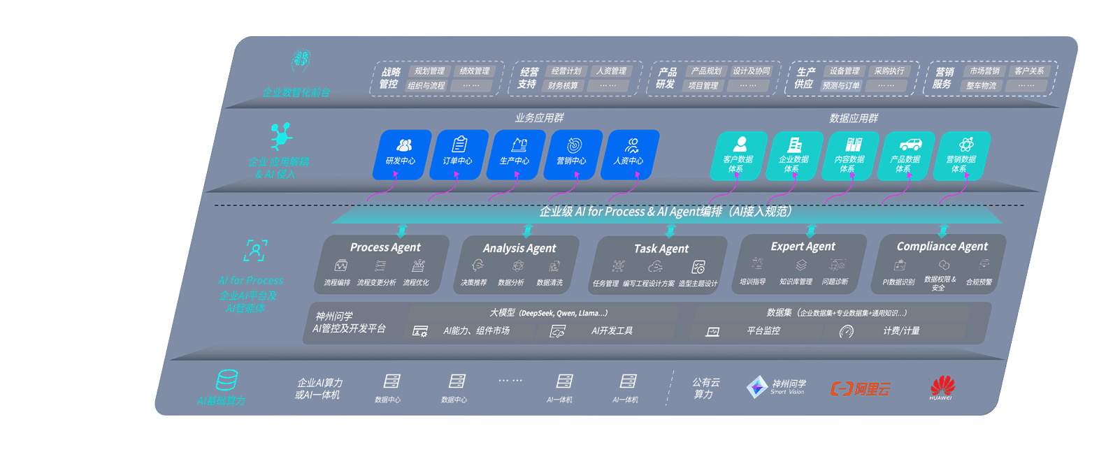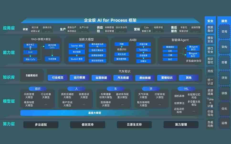 端到端的一站式AI工作空间深度融合了从企业战略规划到日常经营的全流程业务板块,,,定向解决车企内部领域多、、部门多、、、链条长、、场景碎片化等难题,,,,支持车企快速构建以AI为核心的生产力写作体系,,,,实现任务执行与AI能力的无缝集成与交互