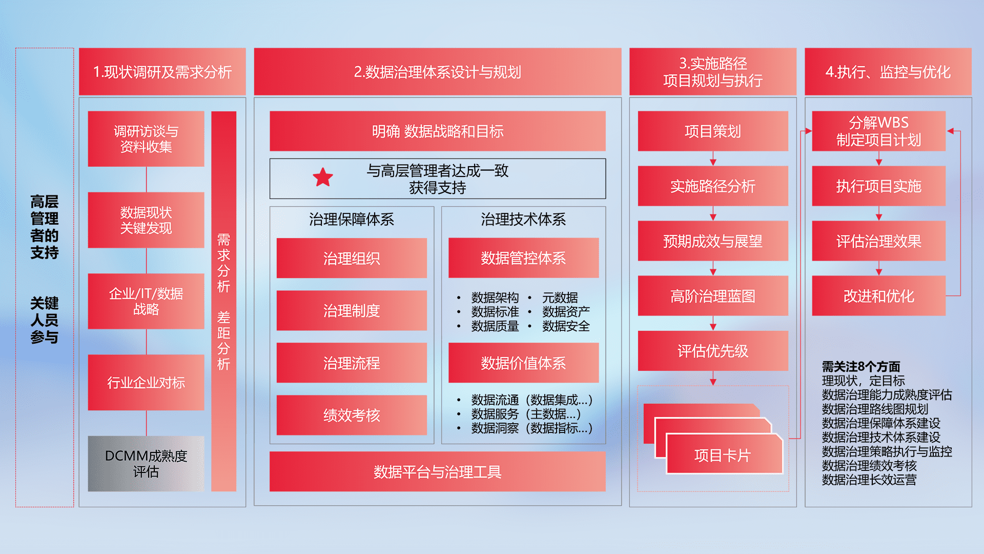 制定并执行统一的数据标准,,,规范数据定义和格式,,消除冗余和不一致性,,,实现跨部门和跨系统的数据一致性,,,为企业提供标准化的数据基础。。